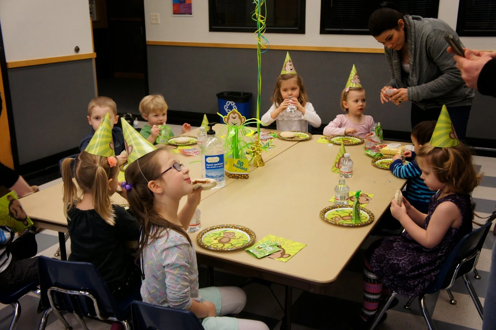 After being sick for two weeks including an ear infection, Ashton recovered just in time for his birthday party. It was a huge success. We rented a mini gym and birthday room at Renton Community Center. The gym was complete with a bouncy house, toys and lots of balls (Ashton's favorite). He loved watching the chaos from all the kids and pointed at everything saying "ball" over and over and over again. I think the older kids had a good time too. Ashton LOVED his cupcake (we new he would), but hated his birthday hat. Of course it was a Monkey theme since we have called him our "Chunky Monkey" from day 1.